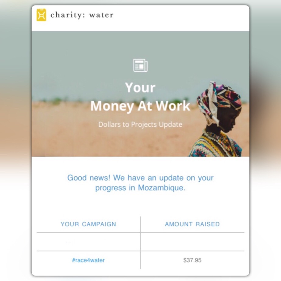 In July of 2018 the One Million Ways #race4water team ran a combined 36.5 Kilometers to raise funds for charity: water projects around the globe.